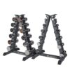 Un set complet de 10 perechi de gantere acoperite cu poliuretan, perfecte pentru antrenament intens, în special exerciții pentru bicepși și triceps.