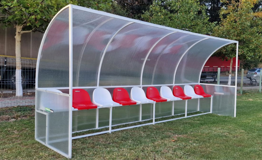 Banca de rezerva pentru jucatori sau oficiali este realizata din structura metalica de 30 x 30 x 2 mm vopsita in camp electrostatic in culorile solicitate de catre client.