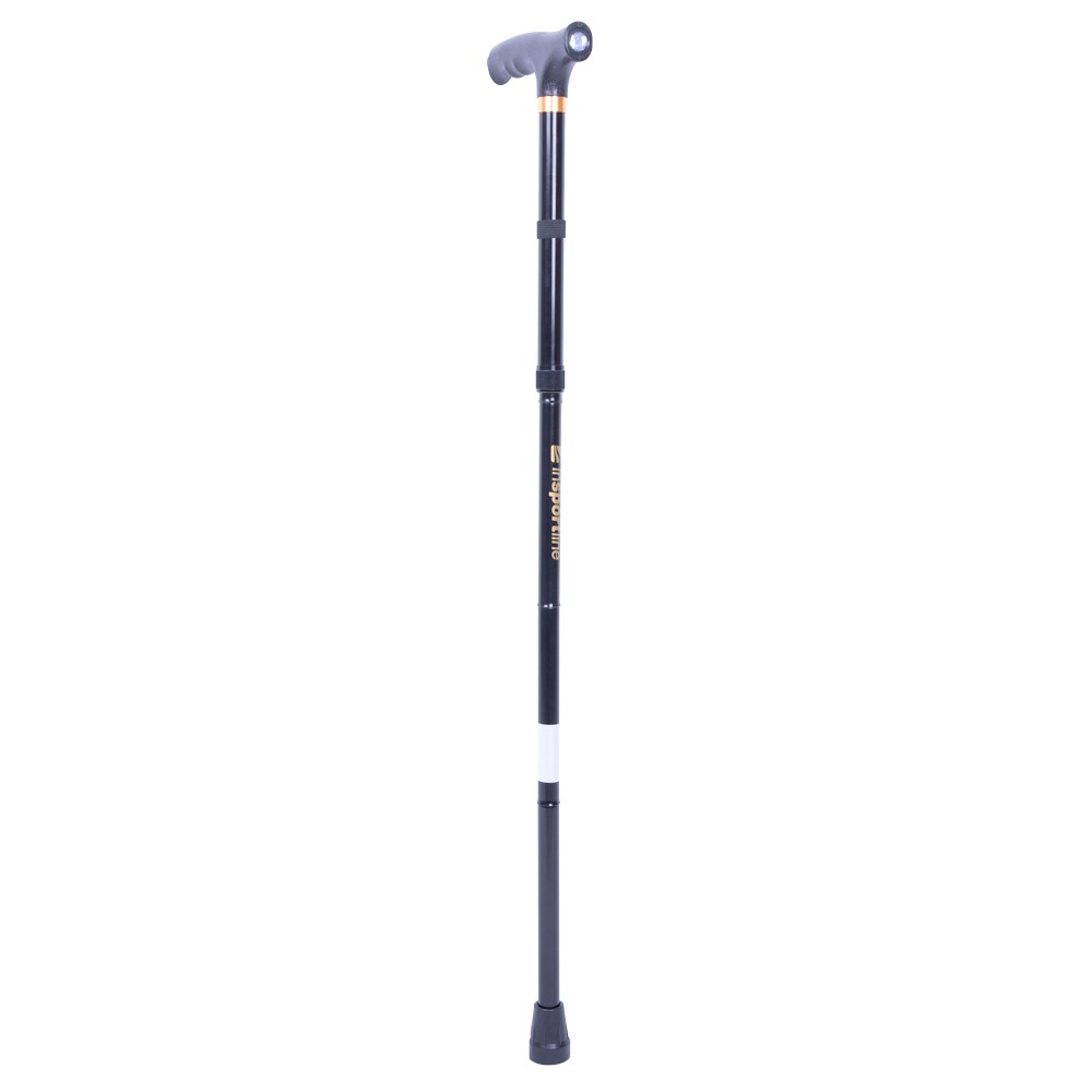 Băț de trekking pliabil cu LED cu baterie, componente reflectorizante, capac din cauciuc, mâner confortabil.