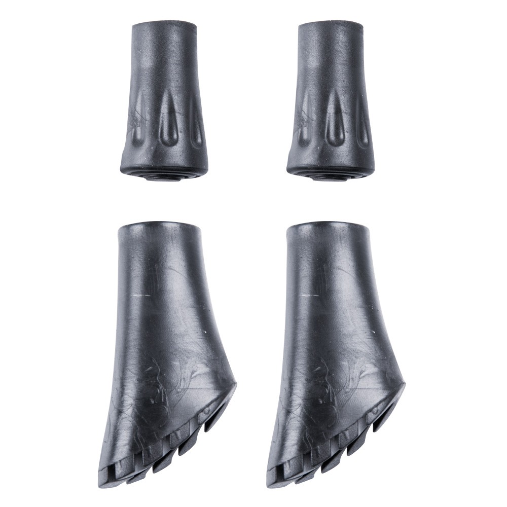 Setul de vârfuri pentru bețe de trekking include 2 vârfuri pentru suprafețe plane și 2 vârfuri pentru suprafețe nepavate.