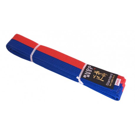Centură bicoloră taekwondo albastru-roșu. Este o centură bicoloră albastru-roșu pentru arte marțiale. Centura are rolul de a ține costumul de arte marțiale legat. Centura însă are rolul și de a prezenta gradul practicantului de arte marțiale. Centura bicoloră de obicei reprezintă un nivel intermediar în arte marțiale. Centura bicoloră albastru-roșu poate fi folosită în diferite stiluri de arte marțiale. Totuși centura bicoloră albastru-roșu cu dispunerea culorilor longitudinal este specifică practicanților de taekwondo dar desigur acestă centură este utilizată și în alte stiluri de arte marțiale.