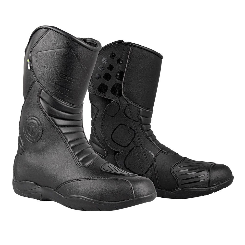 Cizmele moto W-TEC Districto sunt cizme inalte potrivite atat pentru motocicletele de sosea, cat si pentru traficul urban. Inchiderea combinata (un fermoar lung si banda Velcro) asigura fixarea in loc a cizmelor. Zona intarita a calcaiului, varfului, gleznei, tibiei si manetei schimbatorului de viteze va mentin picioarele in siguranta. Banda reflectorizanta de pe calcai ofera o siguranta suplimentara, contribuind la o vizibilitate mai buna in conditii de lumina slaba. Cizmele indeplinesc normele de siguranta conform EN 13634:2015, indeplinesc astfel cerintele legislative UE.