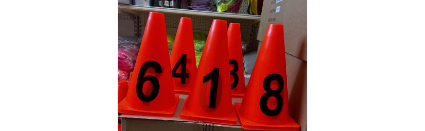 Con (jalon) din PVC, numerotat, foarte rezistent, indispensabil in timpul antrenamentelor.Material semi-flexibil, pentru amortizarea impactului.Se poate folosi exterior/interior.23 cm inaltime, 13 cm diametrul bazei Culori disponibile: portocaliu, galben neon. Produsele sunt disponibile in limita stocului!Pentru verificare stoc va rugam contactati-ne! ID SEAP/SICAP: ART SPORT TOTAL SRL