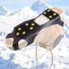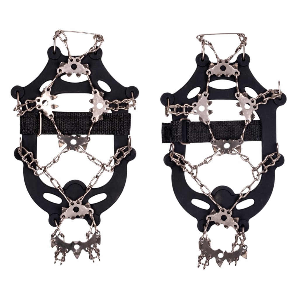 Crampoane practice anti-alunecare, atașament pentru încălțăminte, potrivite pentru drumeții, mers pe jos și pe trotuare și drumuri înghețate, buclă in spate pentru încălţare ușoară, se vând în perechi.