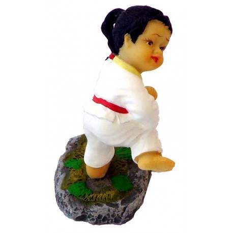 Figurina reprezintă o fată karateka ce execută o tehnică de lovire sau blocaj cu piciorul. Figurina are la brâu centura roșie, iar în piept o emblema.