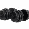 Setul contine discuri din PVC cu ciment 2×20 kg, 2 bare cu maner aderent, sigurante cu filet.