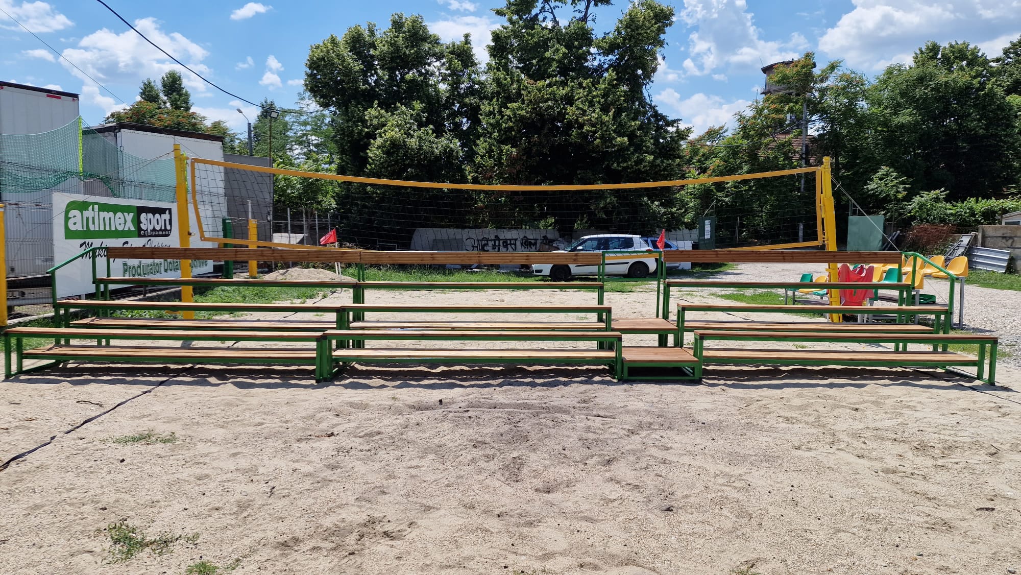 Gradene pentru spectatori produse de Artimex Sport, realizate din teava rectangulara vopsita in camp electrostatic, cu capacitatea de 50 de locuri. Gradena este compusa din 3 module, cu scara de urcare/coborare la mijloc, mana curenta la spate si pe 2 laturi. Tribunele au lungimea de 8,40 m si adancimea de 1,87 m. Sezutul si podeaua sunt realizate din lemn de pin tratat pentru exterior, cu grosimea de 25 mm.
