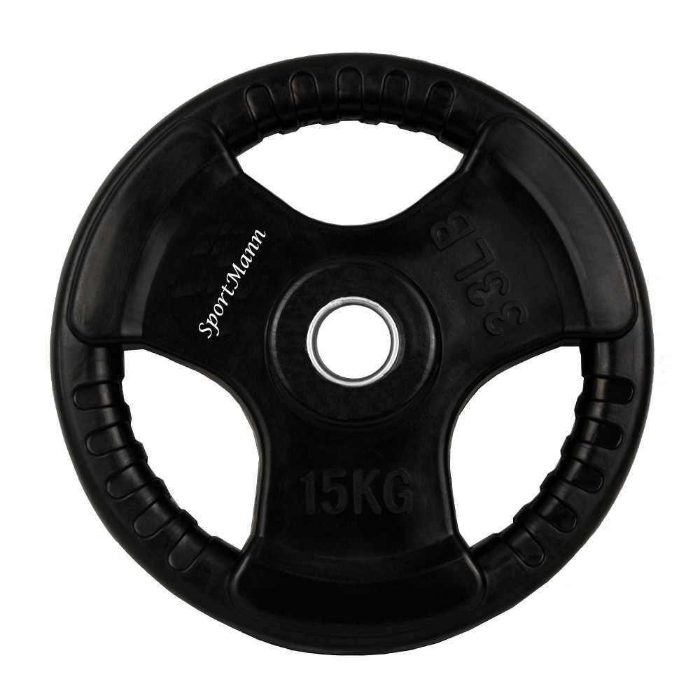 Greutatea cauciucata Sportmann de 15 kg este potrivita pentru barele cu diametrul de 30 mm.