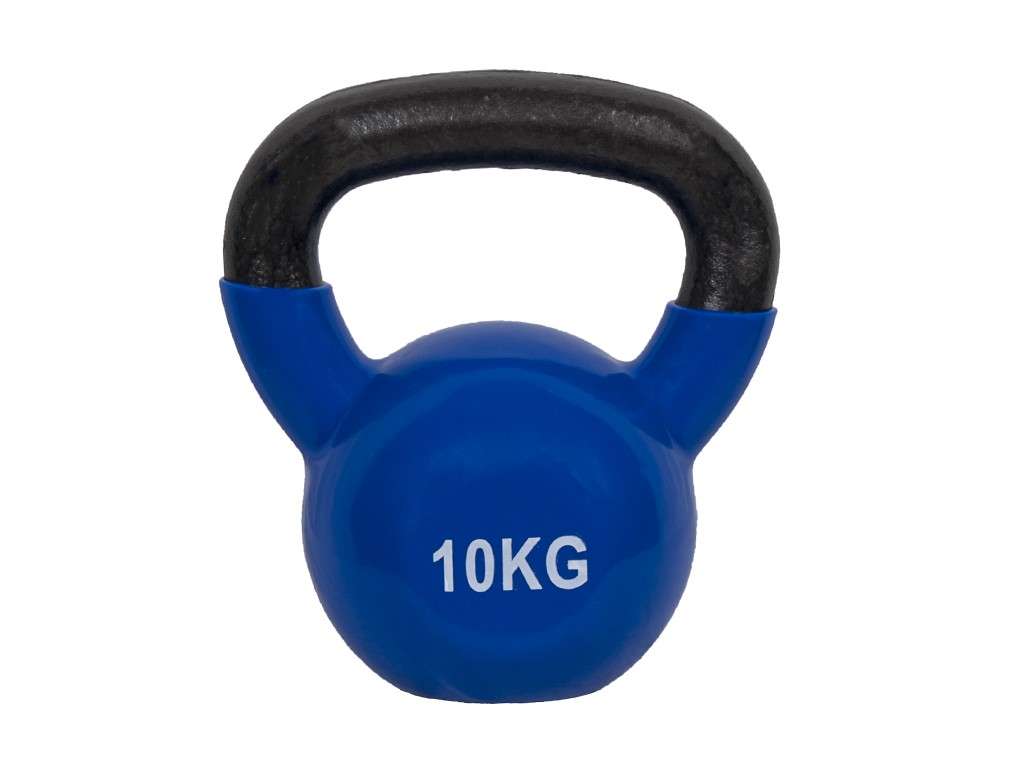 Gantera Kettlebell Vinil 10 kg, permite efectuarea unei game variate de exercitii, realizata din fier si invelita in vinil, culori variate, prindere ergonomica, grosime prindere 32 mm, inaltime 210 mm, design placut.