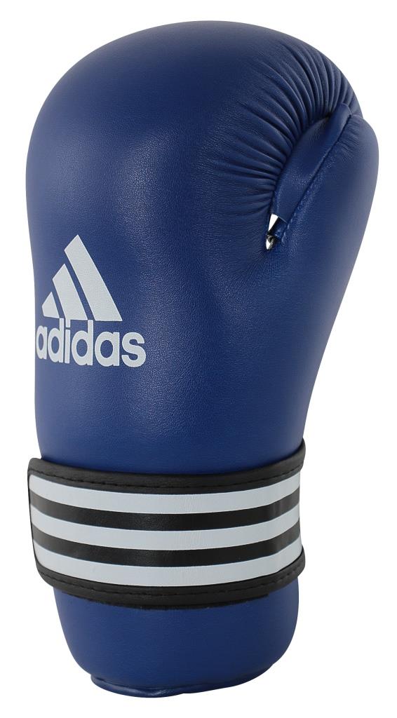 Manusi Adidas pentru kickboxing semi-contact, aprobate WAKO. Forma ergonomica ofera un confort sporit, dar asigura in acelasi timp si protectie optima la nivelul degetelor si incheieturii.