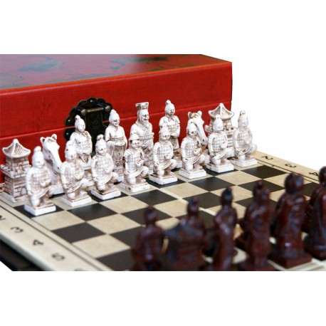 Șahul oferit de noi este de o calitate excepțională. Este livrat într-o cutie confecționată cu rafinament cu dimensiunile de 35x13x20 cm. Tabla de joc are dimensiunile de 29.5×29.5 cm. Piesele de joc reprezintă replici ale luptătorilor de teracotă din China având o înălțime cuprinsă între 5.4 și 6.8 cm.