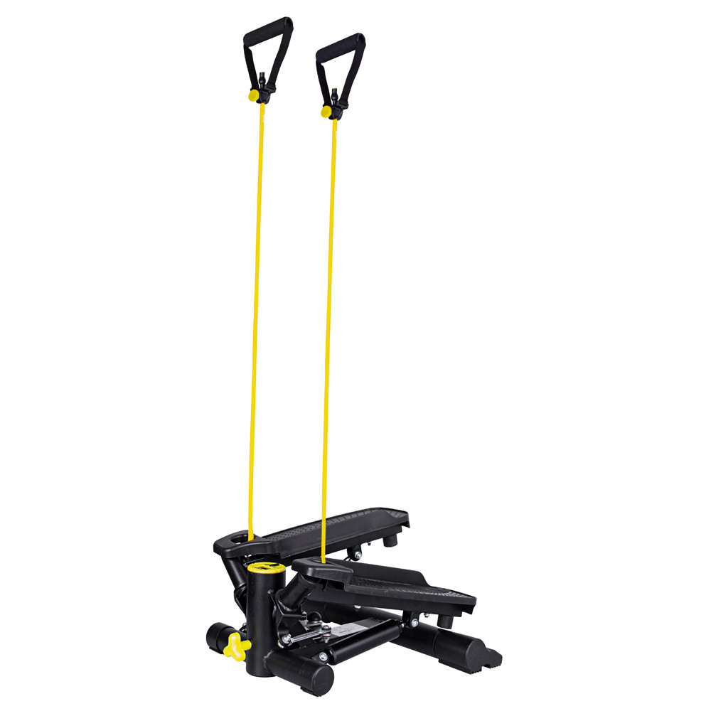 Va veti indragosti de Stepperul Twist inSPORTline Legro in simplitatea si functionarea ei silentioasa. Dupa cum sugereaza si numele sau, exercitiul are ca scop consolidarea coapselor tale interioare si exterioare, precum si a muschilor glutei. Corzile de rezistenta din cauciuc reglabile pe lungime, care sunt fixate pe stepper cu doua carabiniere mici, va permit sa lucrati intregul corp. Puteti regla, de asemenea, inaltimea pasului (slabind butonul de reglare din fata).