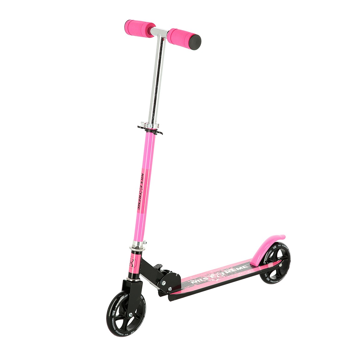 Trotineta Nils Extreme HD114, 145 mm, Roz este conceputa pentru copii si adolescenti. Avantajul sau incontestabil este designul modern si proprietatile de conducere usoara, este perfecta pentru condusul de agrement pe asfalt, pe suprafete de beton si trotuare pavate.