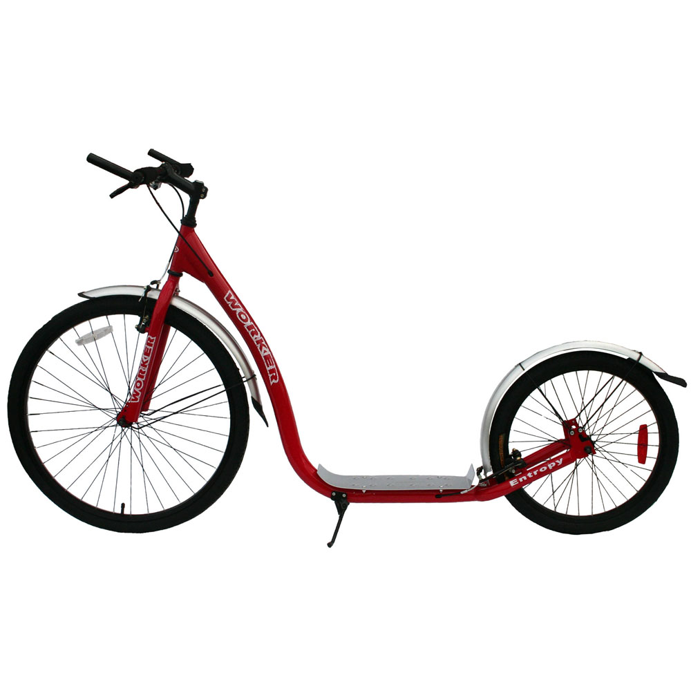 Trotineta WORKER Entropy satisface cele mai înalte standarde de proiectie si siguranţă.. Este o trotineta foarte stabila şi rapida. Echipata pentru viteză, jante de aluminiu si scut pentru rezistenţă minimă. Roata din fata de 26 ” iar roata din spate 20″ , frana pe fata si pe spate, pentru o franare mult mai eficienta.